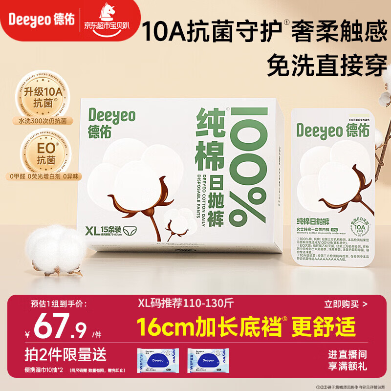 德佑一次性内裤女孕产妇出差生理期纯棉内裤10A抑菌XL码15条