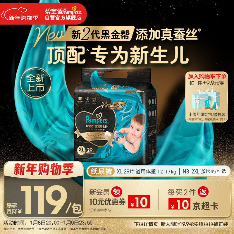帮宝适新生儿顶配黑金帮纸尿裤婴儿尿不湿尿片添加真蚕丝XL29