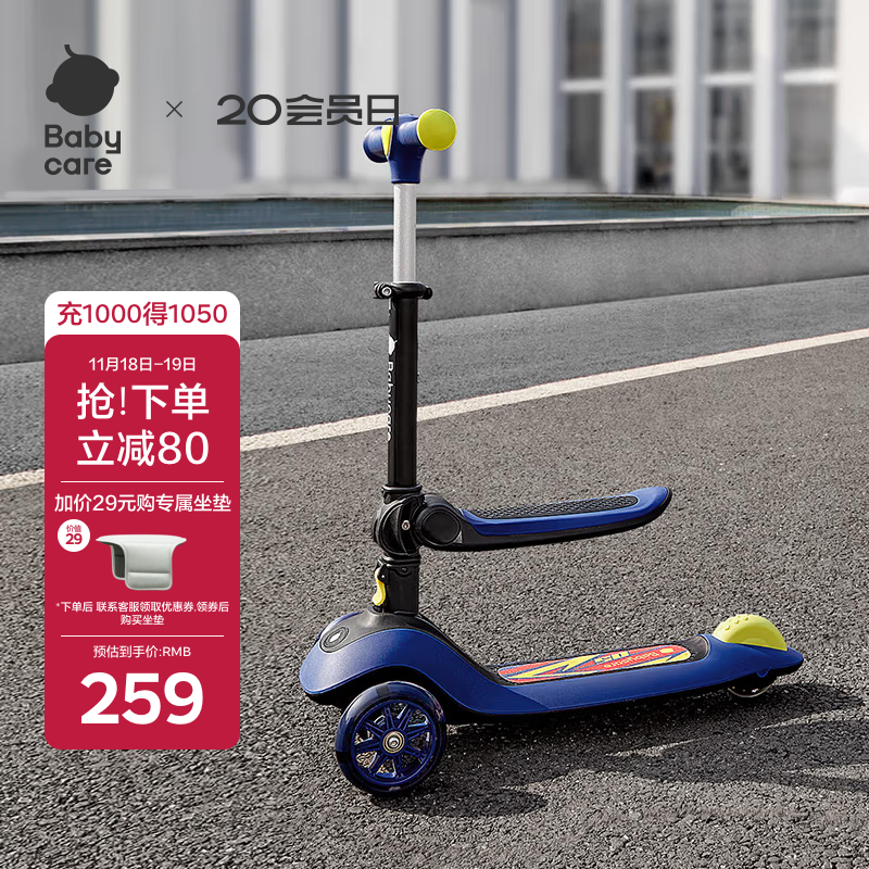 babycare儿童滑板车2-3-6岁轻便可折叠滑车男女童可坐可骑溜溜车-奥里安蓝