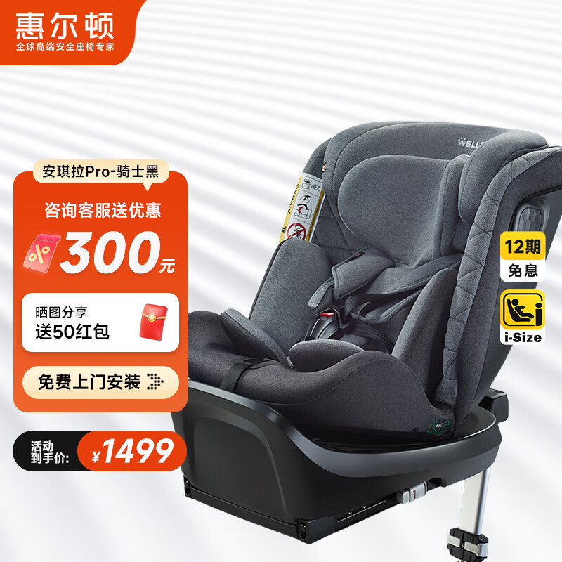 惠尔顿(Welldon)儿童安全座椅 0–12岁车载婴儿 360度旋转 i-Size认证 安琪拉PRO
