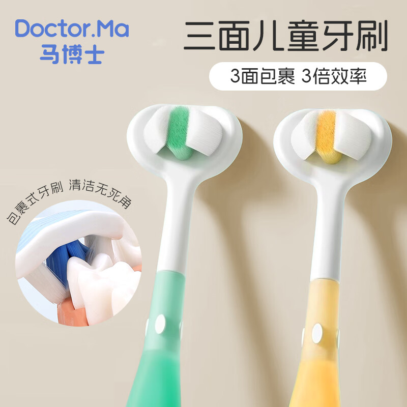 马博士儿童牙刷三面软毛0-2-3-6-12岁以上小孩3D宝宝刷牙 黄色牙刷