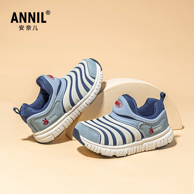 安奈儿男童毛毛虫鞋2025冬季女孩宝宝一脚蹬鞋儿童粉色运动鞋5168蓝色30