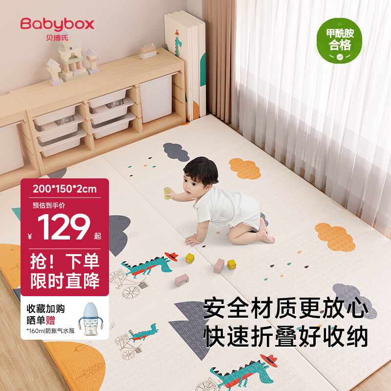贝博氏babybox爬爬垫婴儿宝宝爬行垫XPE加厚双面可折叠地垫200*150*2cm