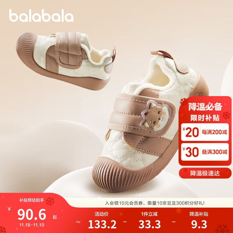 巴拉巴拉学步鞋婴儿鞋男童女童2024新款秋冬宝宝加绒鞋子防滑208424144204