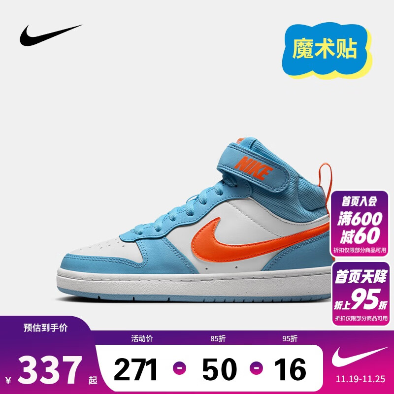 NIKE 耐克童鞋 COURT BOROUGH MID 男女童中帮魔术贴儿童运动休闲板鞋