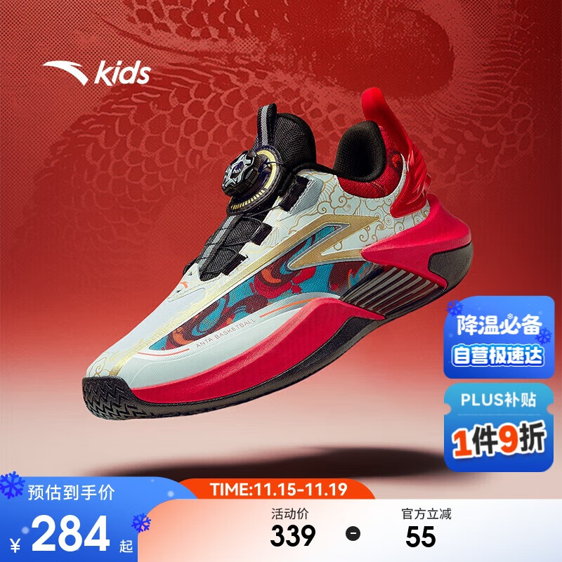 安踏儿童运动鞋男大童旋钮低帮篮球鞋312511115