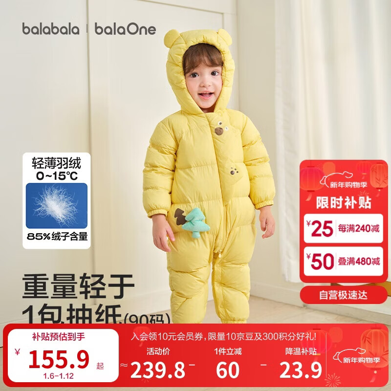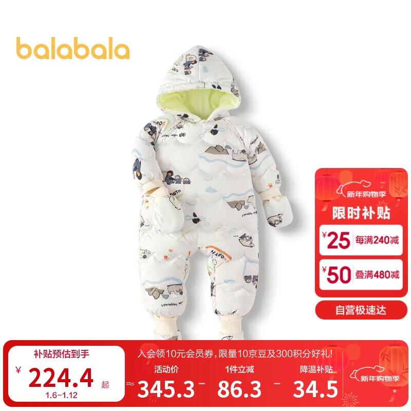 巴拉巴拉童装轻薄羽绒服婴儿外出连体衣冬装宝宝爬服儿童衣服男童女童萌趣