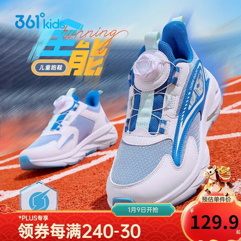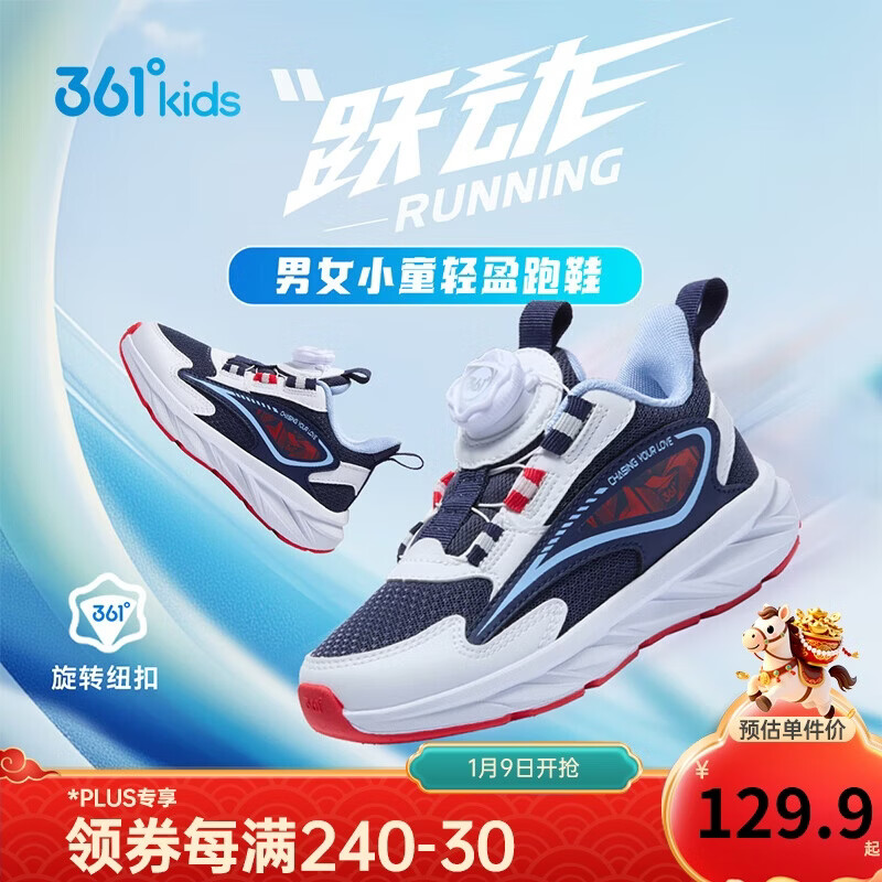 361°童鞋 儿童跑鞋四季男女童3-14岁全能旋钮扣轻弹跑鞋 蓝31