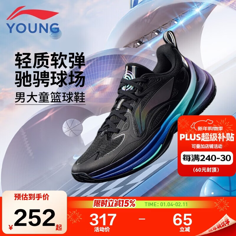 李宁童鞋儿童篮球鞋男大童先锋灵6 TEAM V2抓地支撑运动鞋39YKBV056-1