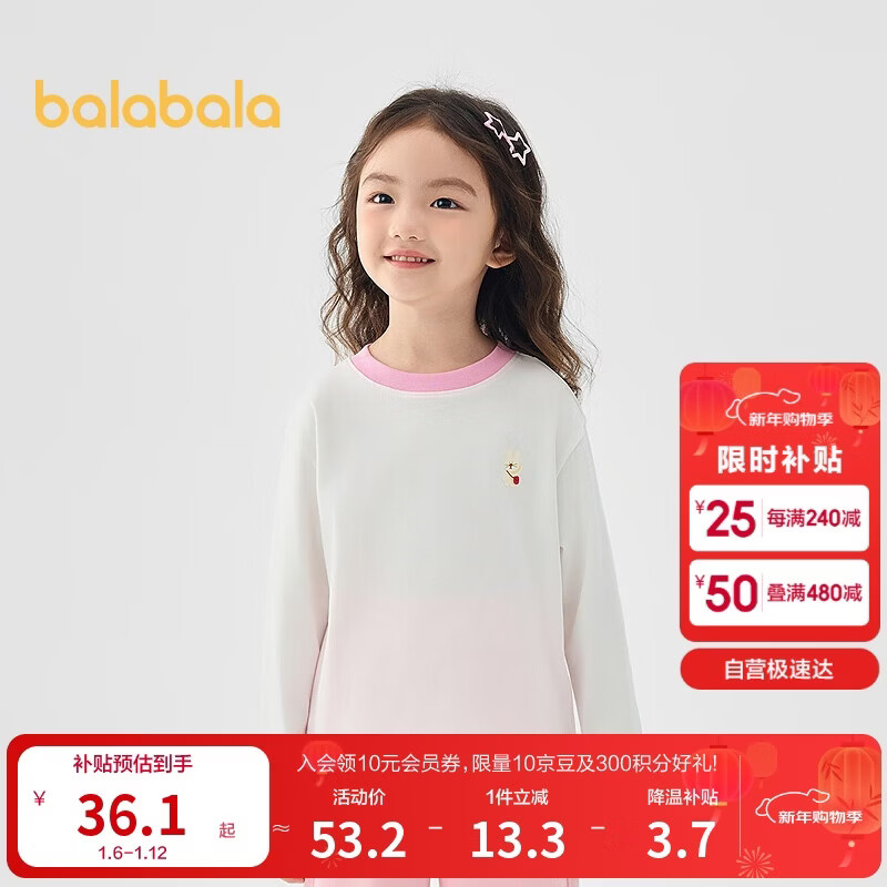 巴拉巴拉童装儿童长袖t恤男童女童2025春装百搭打底衫潮209125100203