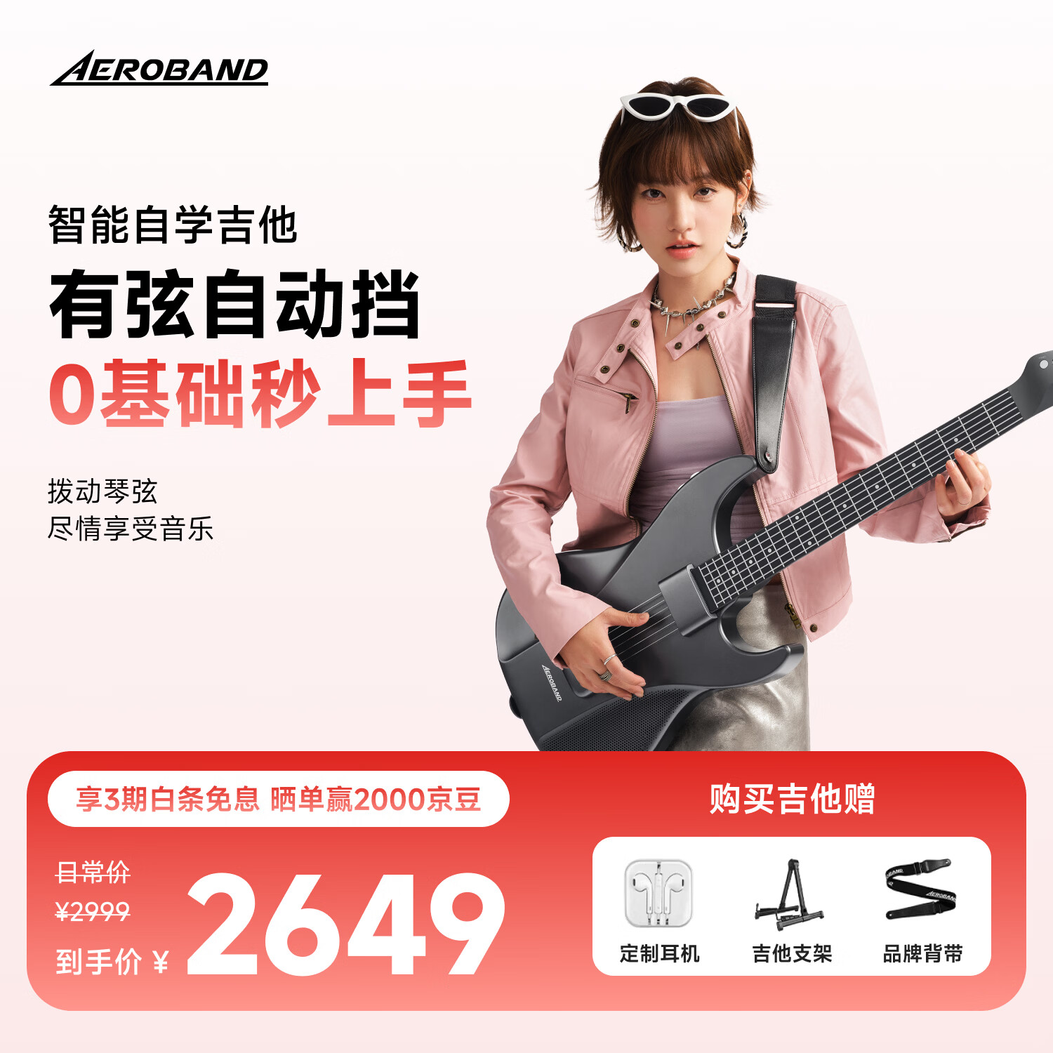 aeroband空气乐队智能自学吉他自动挡电子吉他初学者入门无弦吉他 星耀黑