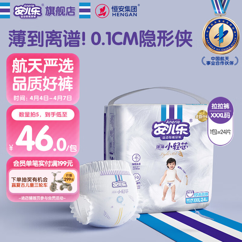 安儿乐(Anerle)小轻芯拉拉裤XXXL24片(18kg以上)超薄透气尿不湿 mini装