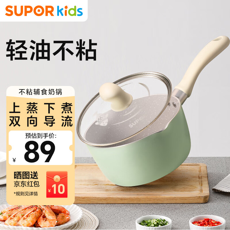 苏泊尔(SUPOR)辅食锅宝宝奶锅平底小奶锅不粘锅婴儿煎煮一体多功能ET16FP01-G