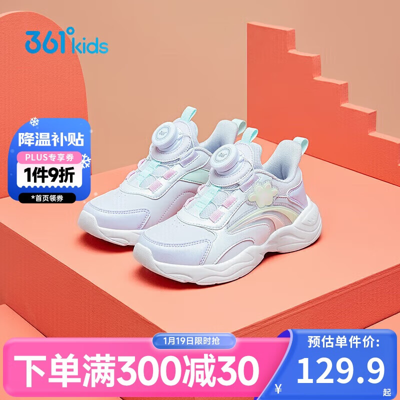 361°童鞋2025冬季小童女童旋纽扣跑鞋 白29