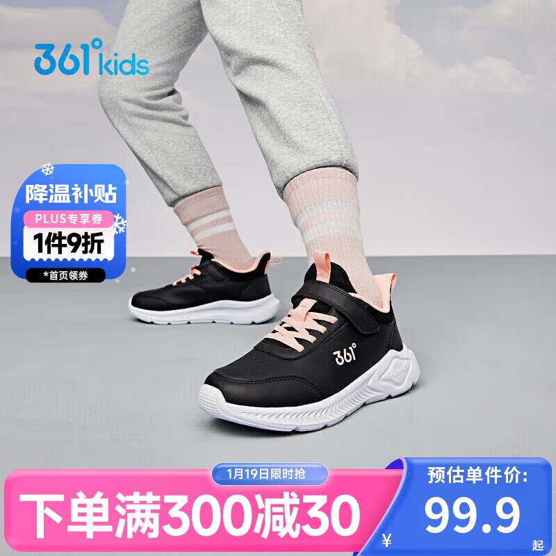 361°童鞋 儿童运动鞋25冬季男女童3-14岁皮革校园跑鞋 黑36