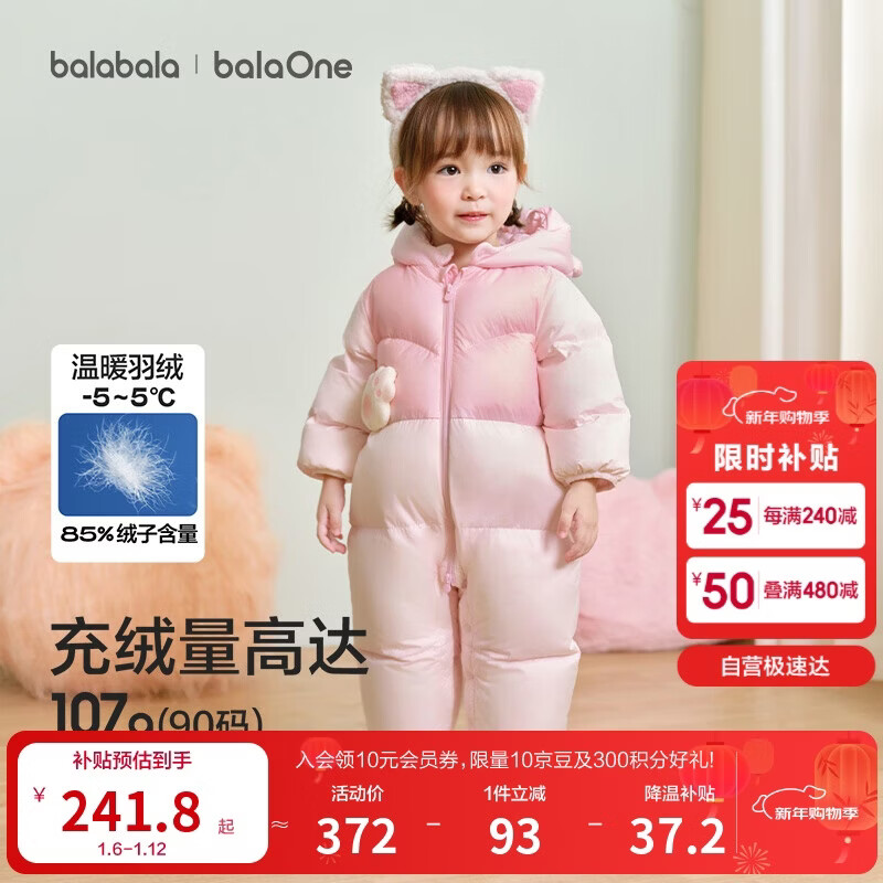 巴拉巴拉童装婴儿连体衣羽绒服假两件宝宝衣服冬装外出男童女童保暖厚时尚