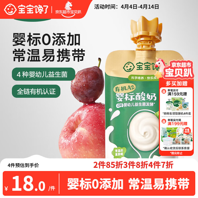 宝宝馋了有机A2婴幼儿酸奶原味85g常温酸奶儿童宝宝辅食6月+