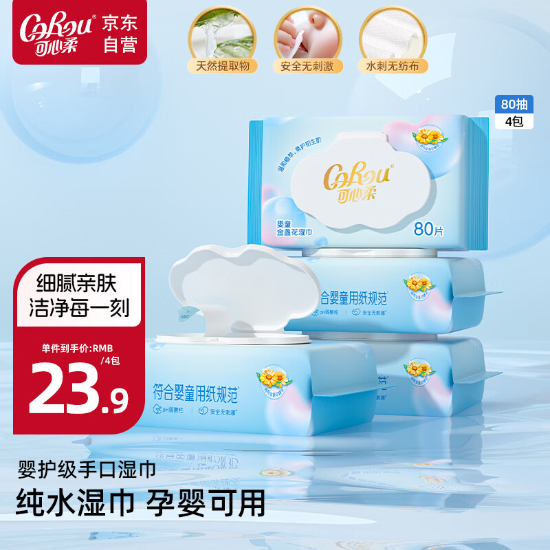 可心柔(COROU) 湿巾婴儿手口婴湿纸巾幼儿专用80抽4大包
