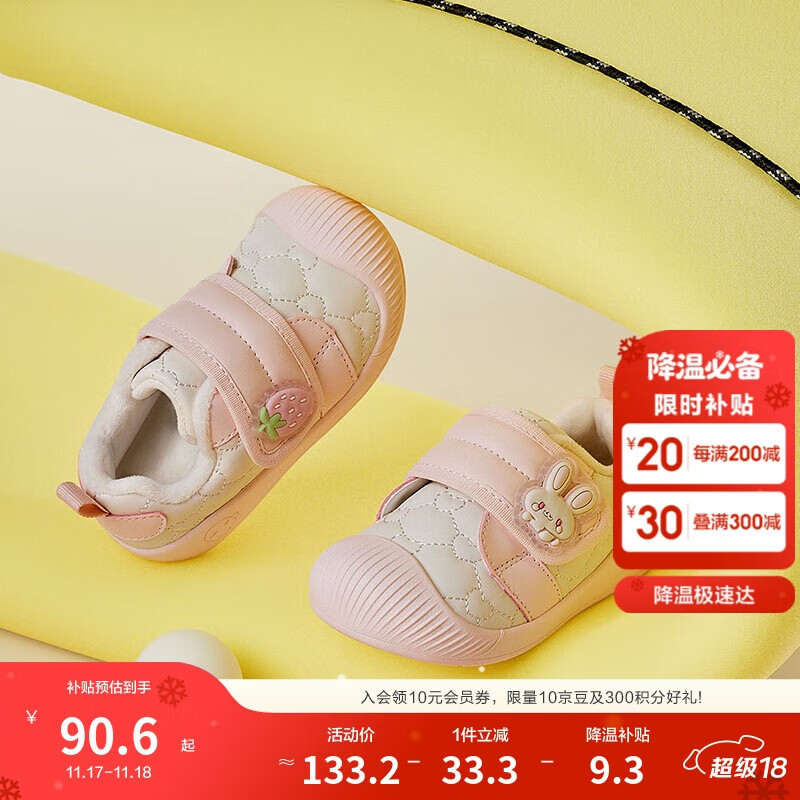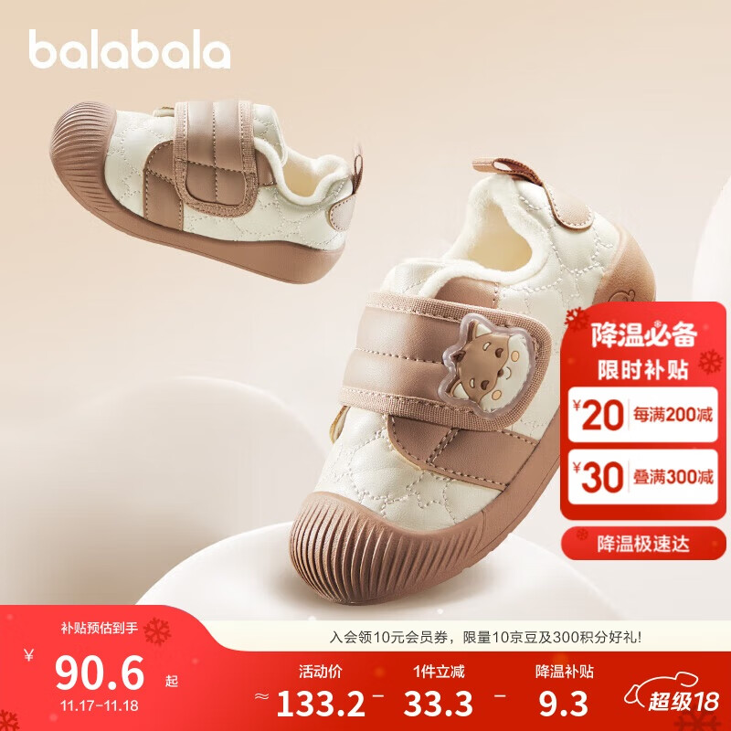 巴拉巴拉学步鞋婴儿鞋男童女童2024新款秋冬宝宝加绒鞋子防滑208424144204