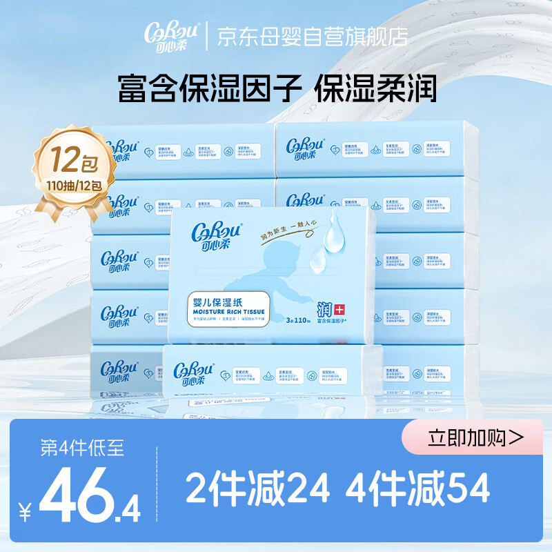 可心柔(COROU)婴儿抽纸110抽12包云柔巾新生儿专用柔纸巾乳霜纸宝宝柔润纸面巾