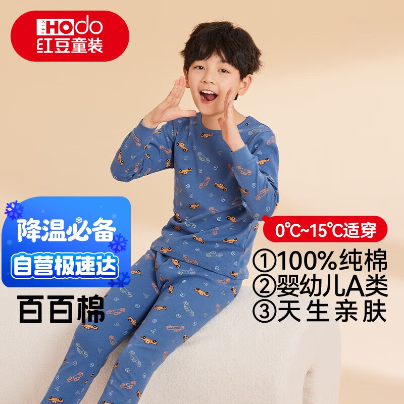 红豆儿童纯棉内衣套装男女童秋衣秋裤秋冬保暖低领棉毛衫M1197蓝灰130
