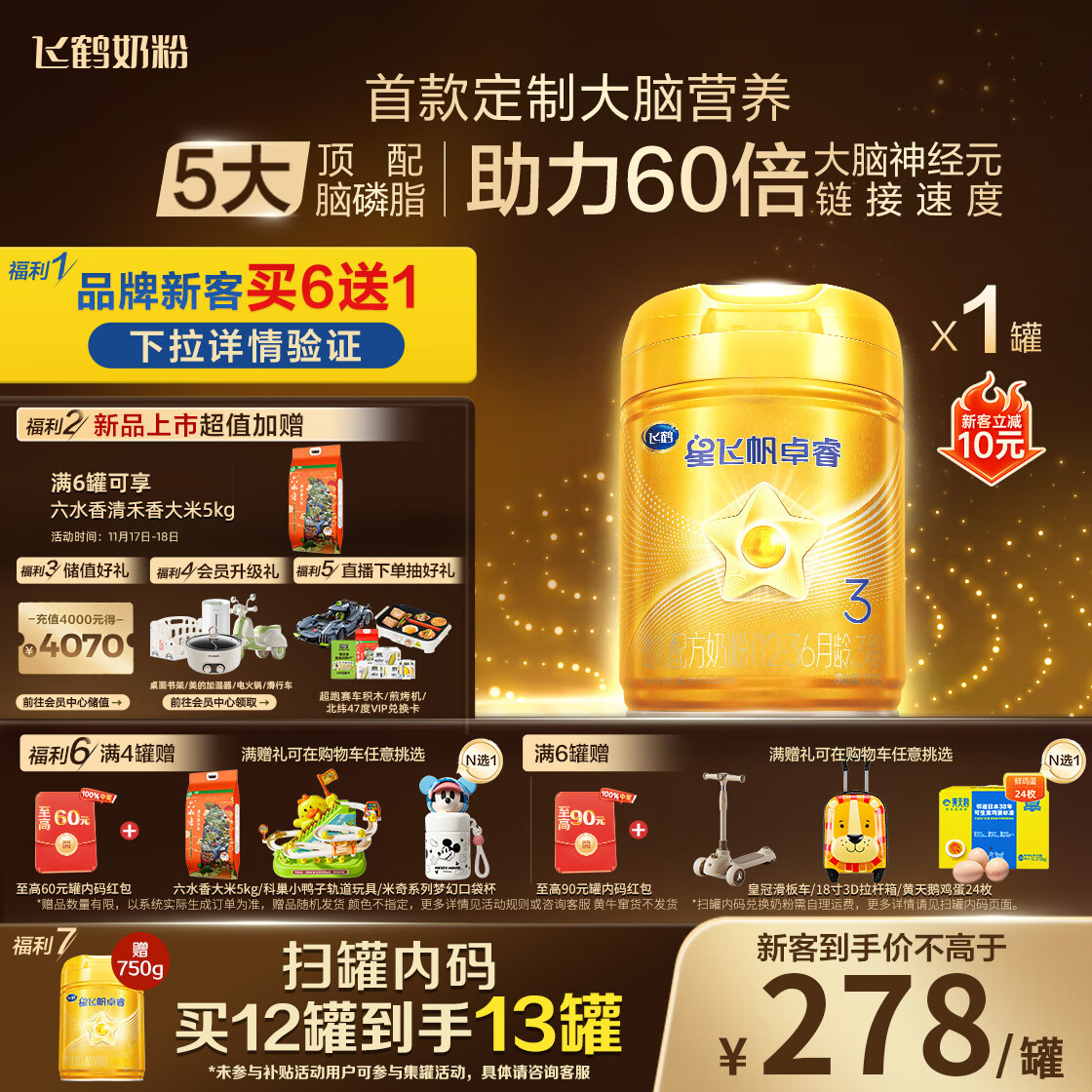 飞鹤星飞帆卓睿 幼儿配方奶粉3段(1-3岁)750g 乳铁蛋白【老爸抽检】