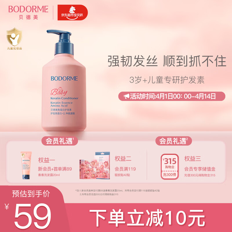 贝德美角蛋白护发素350ml 无硅油 修护滋养润发乳 3-4-6-12岁男女孩通用