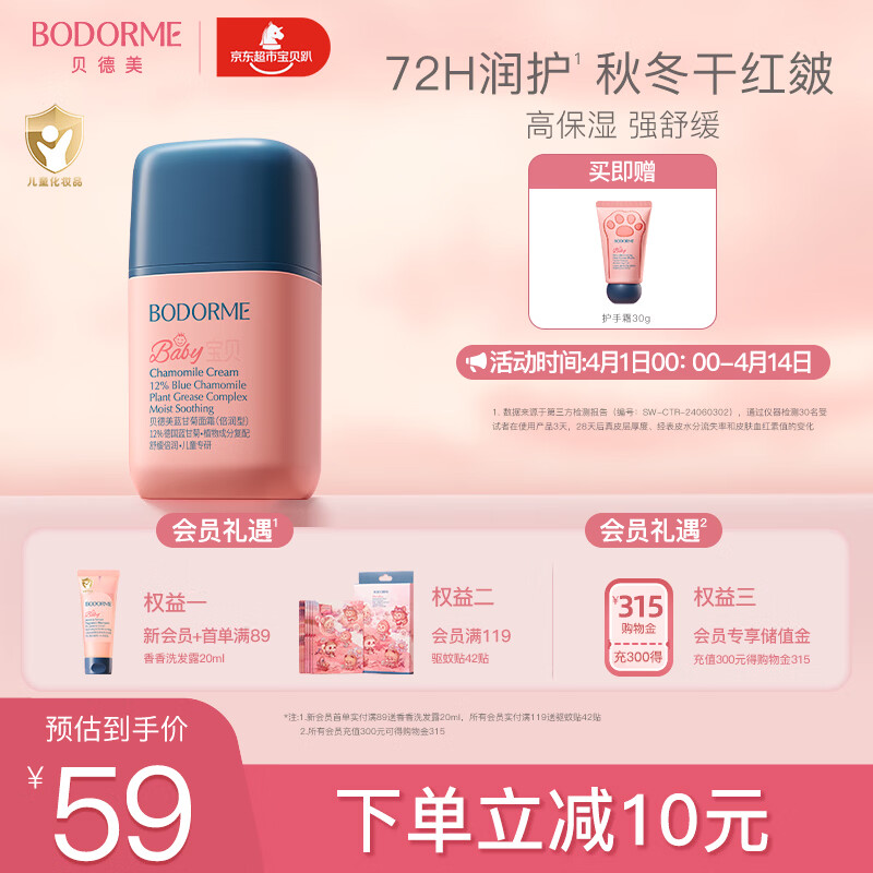 贝德美儿童蓝甘菊宝宝面霜滋润补水保湿婴儿防皴擦脸 50g【小圆瓶混发】