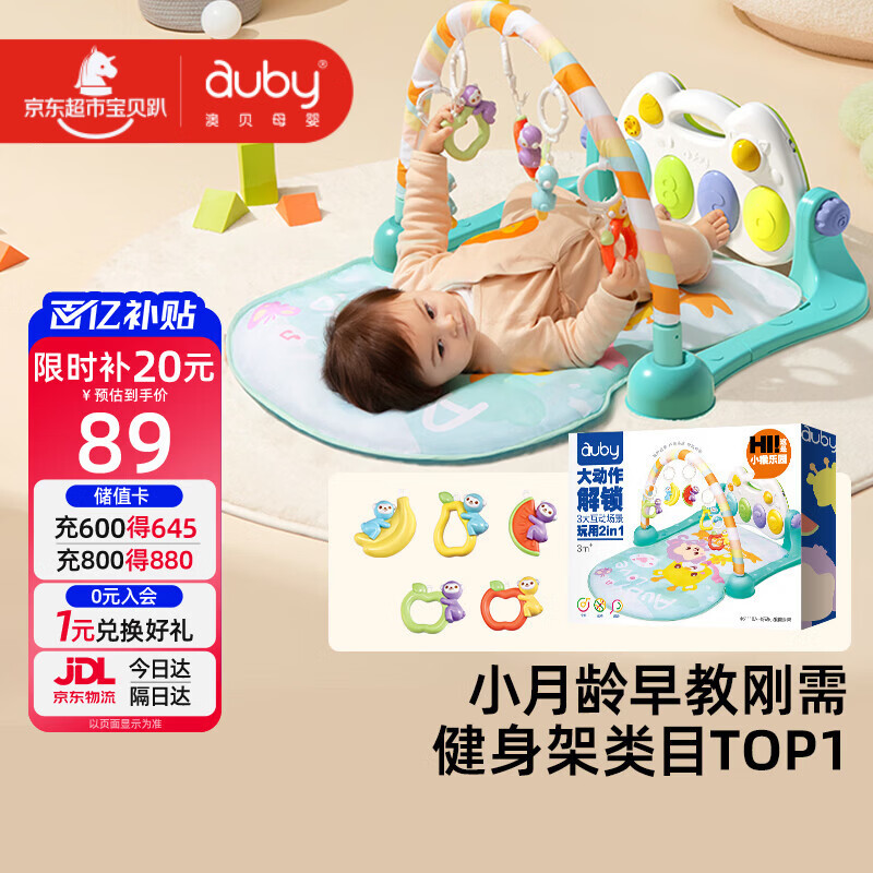 澳贝(auby)新生儿礼盒婴幼儿玩具好动小猴健身架宝宝脚踏踩钢琴见面礼物满月
