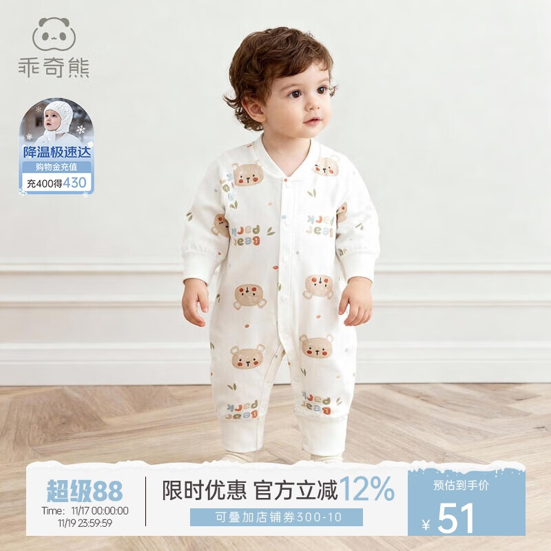 乖奇熊婴儿衣服纯棉连体衣秋冬季新生儿睡衣宝宝家居哈衣爬服秋天装a类