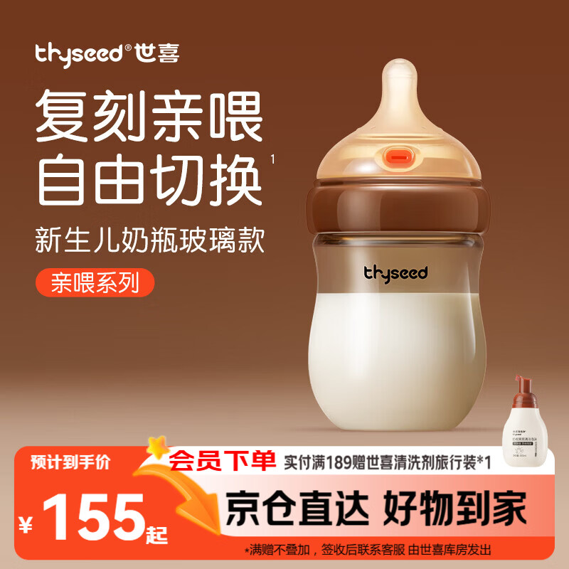 世喜新生儿1-2个月防胀气奶瓶玻璃婴儿仿母乳奶嘴160ml