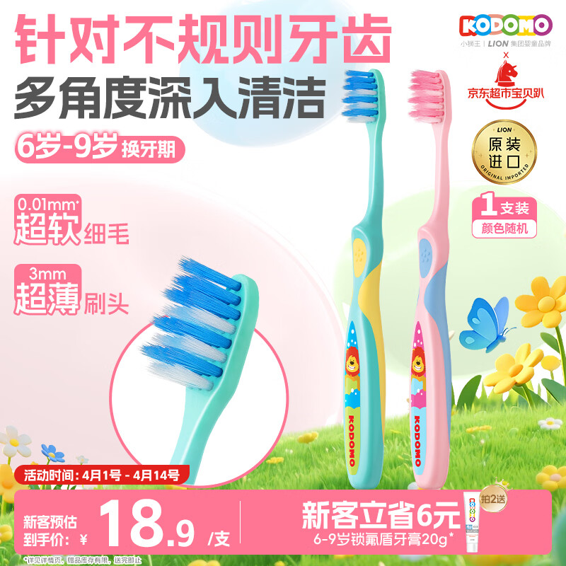 狮王(Lion)小狮王儿童牙刷6-9岁 进口宝宝细软毛牙刷幼儿颜色随机热门商品
