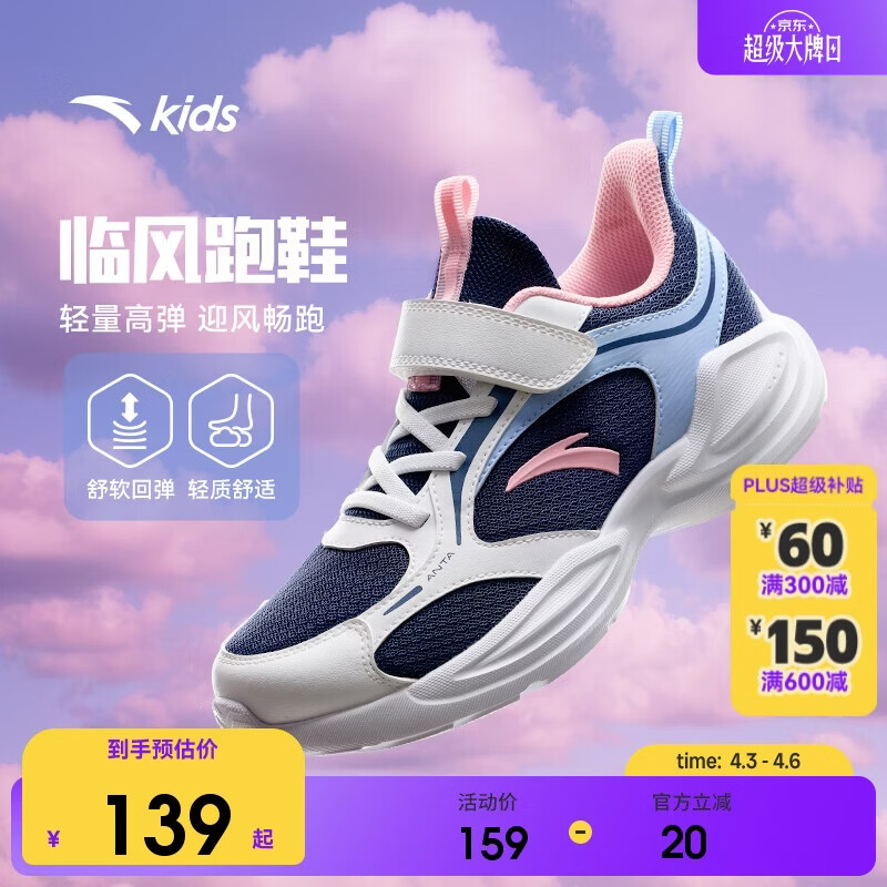 安踏儿童运动鞋女童鞋子2026女大童临风密网透气跑步鞋A22615556