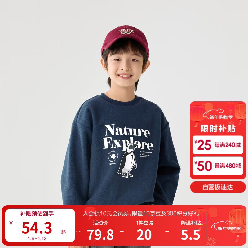 巴拉巴拉童装儿童卫衣秋冬2024男童女童圆领套头摇粒绒上衣潮208424121216