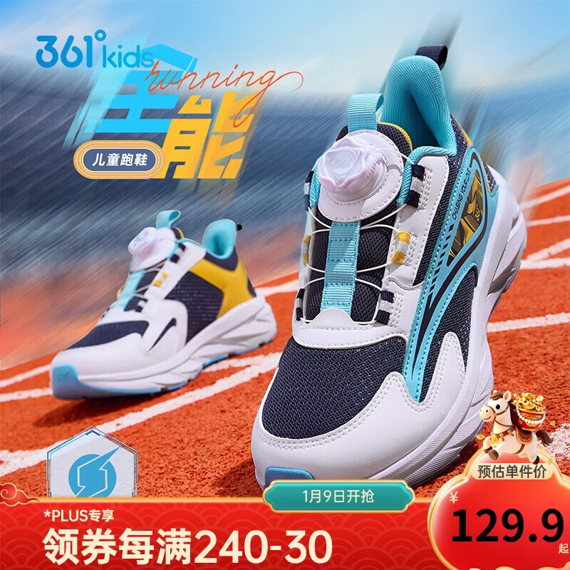 361°童鞋 儿童跑鞋四季男女童3-14岁全能旋钮扣轻弹跑鞋 蓝37