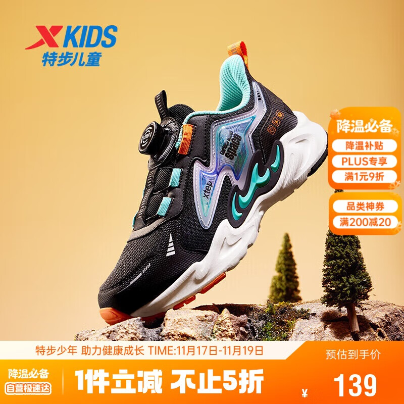 特步(XTEP)儿童童鞋峯行2.0旋转扣运动休闲鞋 黑/新金属银 36码