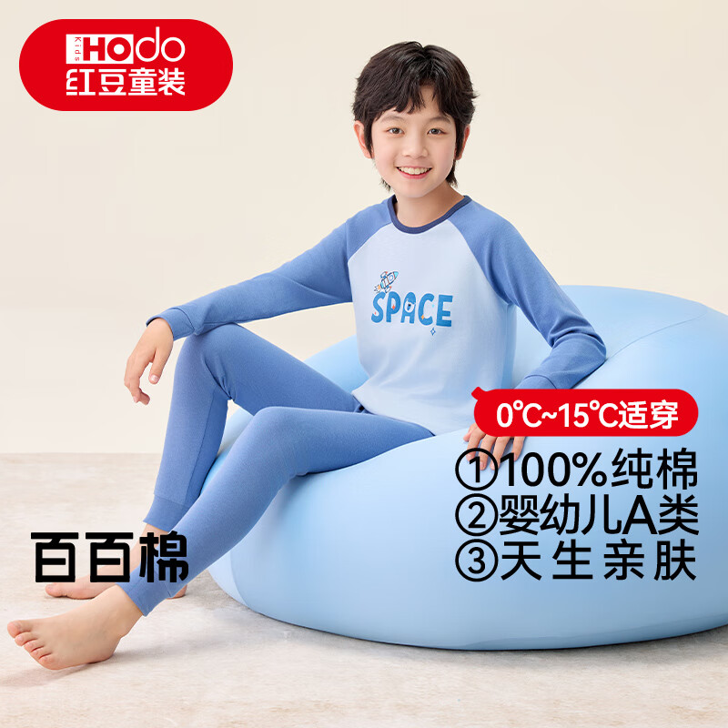 红豆纯棉秋衣秋裤中大童秋冬内衣套装儿童居家睡衣M1111宇宙飞船160