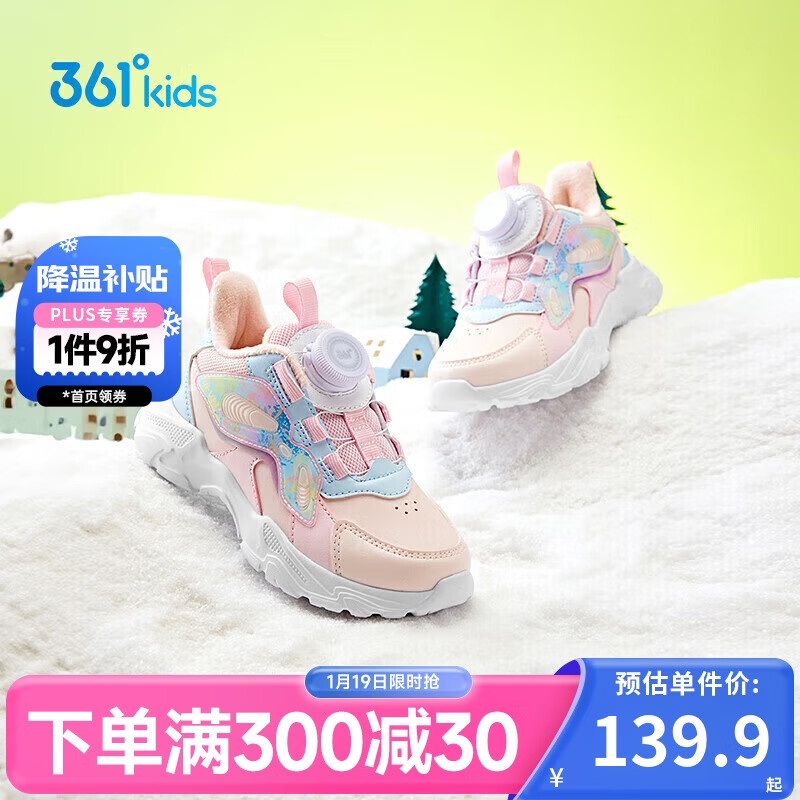 361°童鞋2025冬季小童女童旋纽扣跑鞋 紫30
