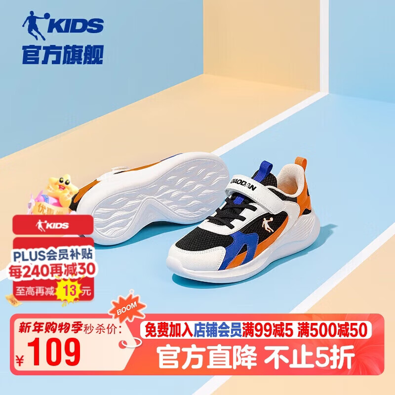 乔丹男大童跑步鞋儿童春秋季运动鞋子密网儿童鞋 黑色/乔丹白39