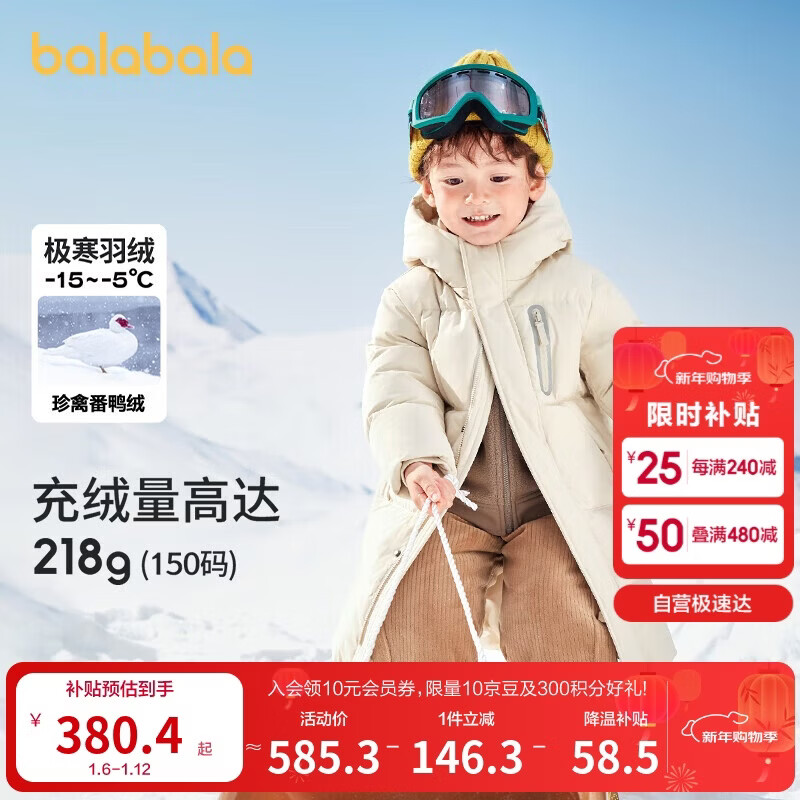 巴拉巴拉儿童羽绒服男童女童外套宝宝冬装童装中长款洋气208424107201