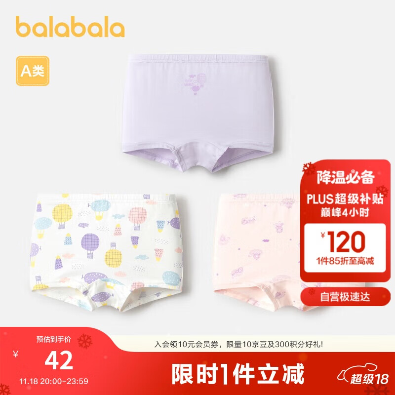 巴拉巴拉女童内裤棉平角春季新款儿童四角短裤不夹PP三条装208924170020
