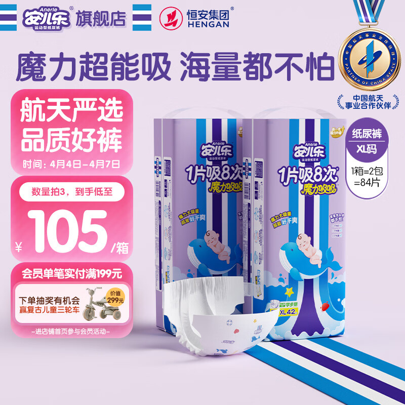 安儿乐(Anerle)魔力吸吸纸尿裤XL42片*2(12-17kg)透气大吸量尿不湿【夜用专研】