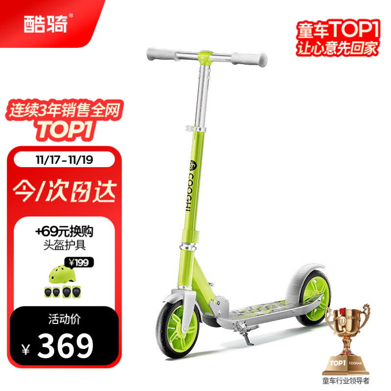 酷骑儿童滑板车X1铝合金轻便车身折叠款重力转向100KG免安装生日礼物