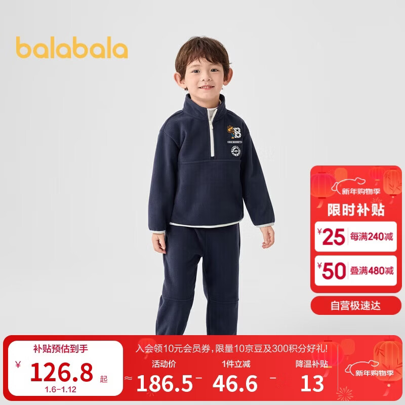 巴拉巴拉男童套装摇粒绒学院两件套2025秋冬童装【商场同款】201424104101