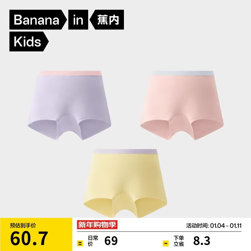 蕉内355C儿童内裤男女童平角内裤棉感7A抗菌柔软透气舒适宝宝内衣3件