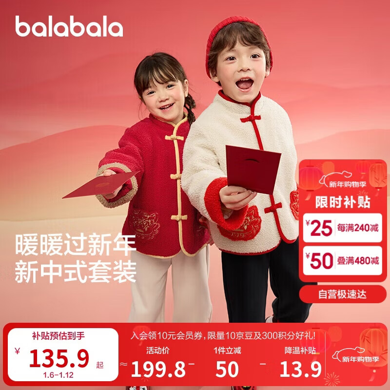 巴拉巴拉童装儿童套装男童女童长袖春秋季2025宝宝加绒拜年服208125104201