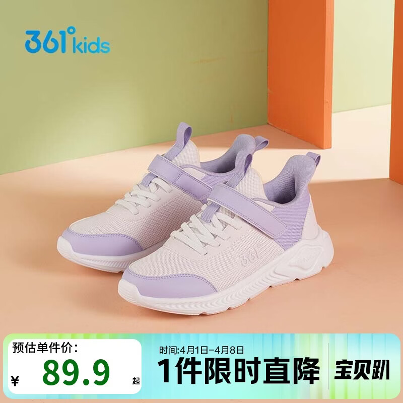 361°儿童运动鞋男女童(3-12岁)防撞鞋头密网休闲跑鞋 紫37