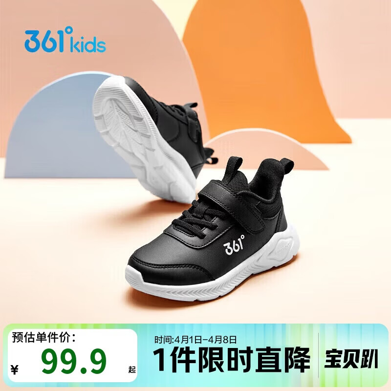 361°童鞋 儿童运动鞋2冬季男女童3-14岁皮革校园跑鞋 黑32