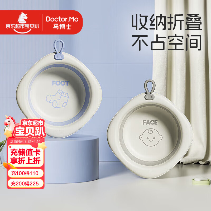 马博士婴儿洗脸盆折叠盆新生儿脸盆可挂可折叠洗屁屁盆 2个装