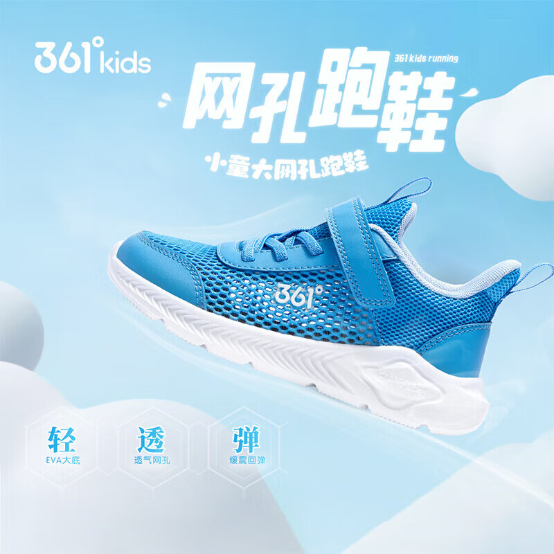 361°童鞋 儿童跑鞋2025夏男女童透气轻便校园鞋轻弹跑鞋 蓝33